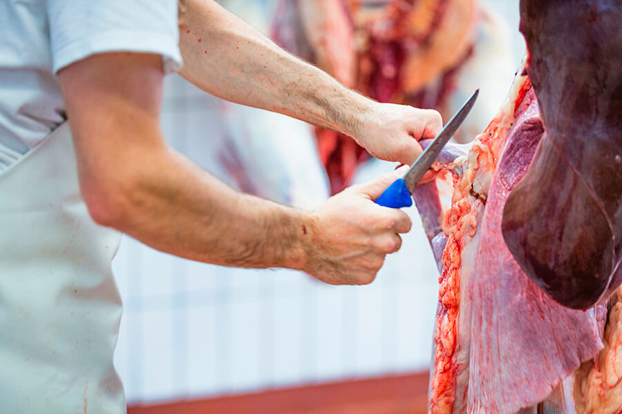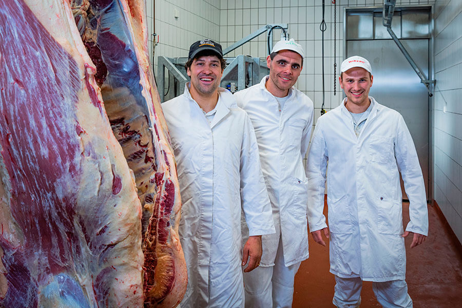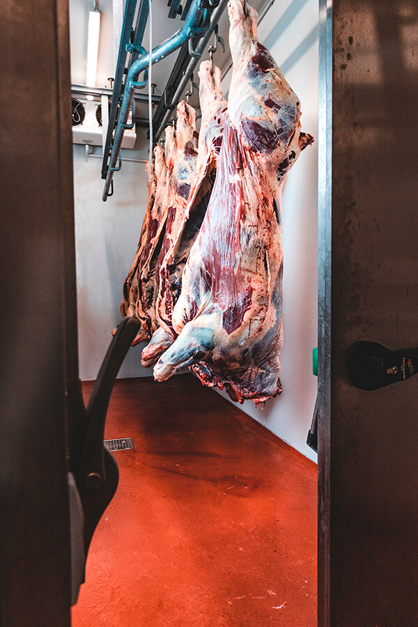 In unserem modern ausgestatteten Schlachthaus werden die Tiere möglichst stressfrei von unsrem Metzgermeister tierschonend erlegt und bleiben dann 8-10 Tage zur Reifung des Fleisches im Kühlhaus. Hier entwickelt das Fleisch sein köstliches Aroma.